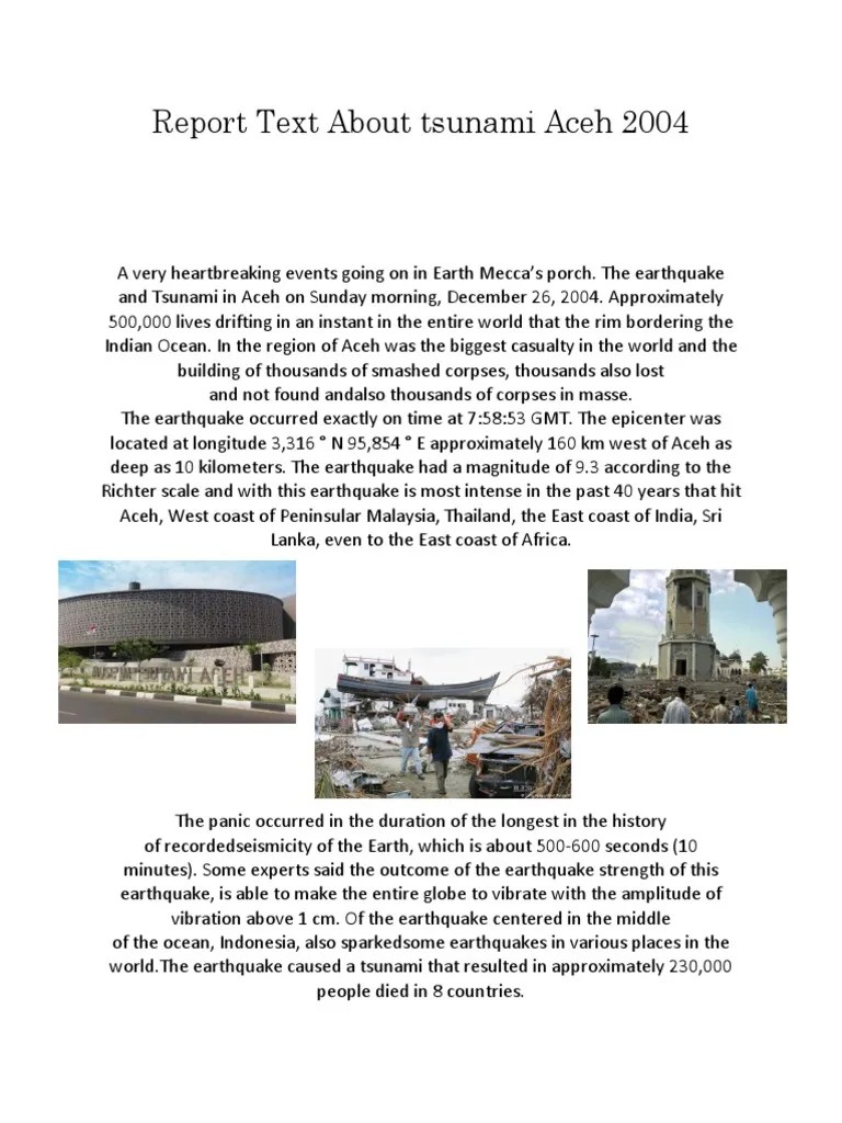 Demikianlah 3 contoh explanatioan text tentang bencana alam dalam bahasa inggris semoga bermanfaat dan dapat . Namun, kali ini kita akan membahas nya dengan tema yang berbeda . Struktur report text terdiri dari 2 antara lain. Pada materi sebelumnya, kita pernah membahas mengenai report text tersebut. Contoh report text tentang bencana alam tsunami di jepang.